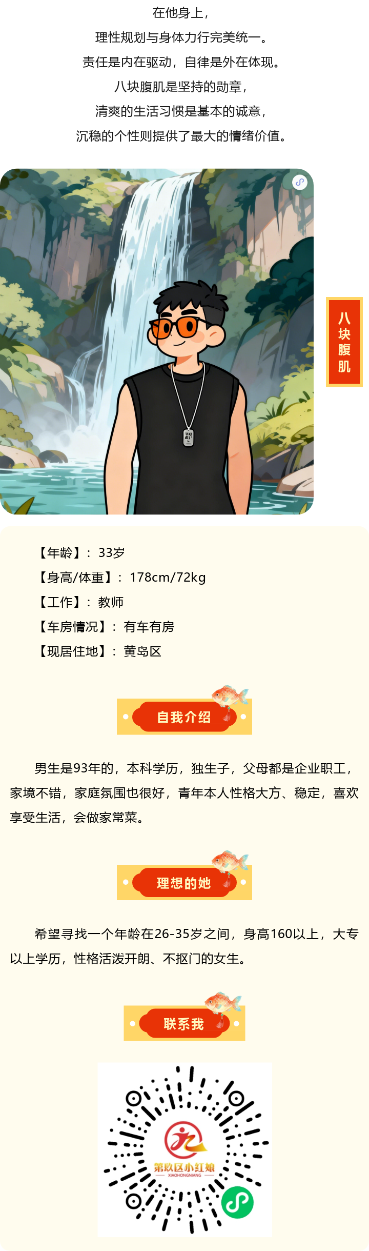 93年小哥哥,身高178,教师,性格好,父母都有退休......