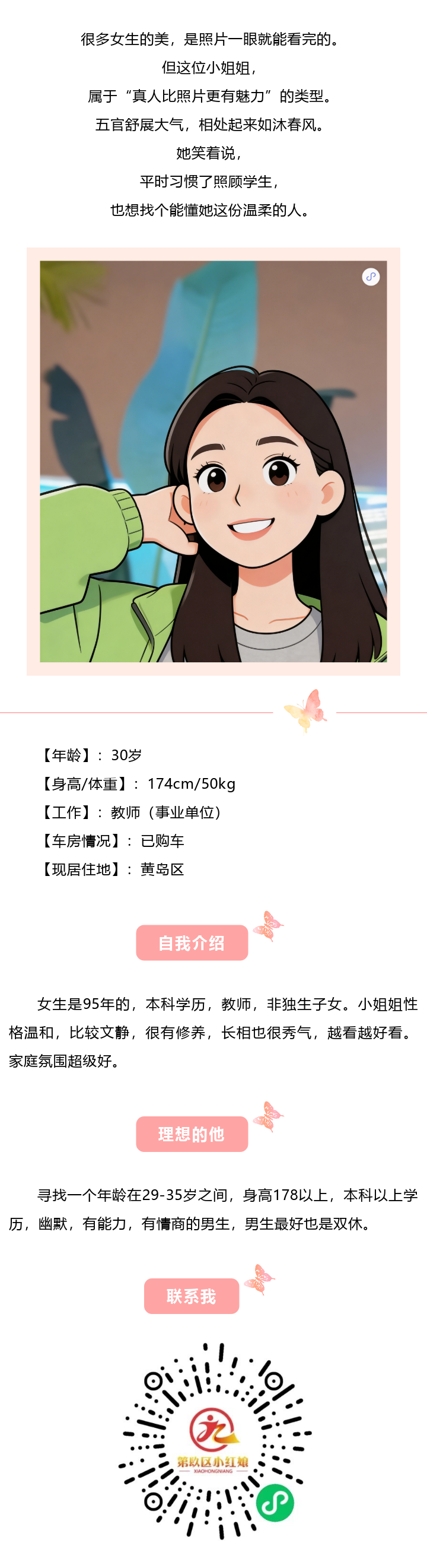 95年教师小姐姐,本科学历,长相秀气......
